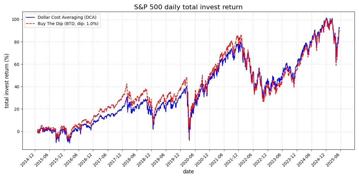분할 매수 투자 전략 비교 분석: DCA vs BTD (2025.5.22)