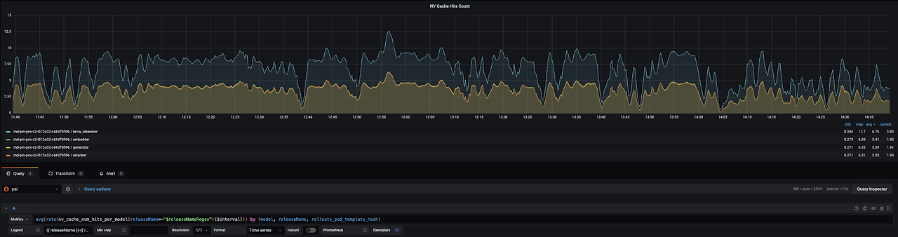 NVIDIA Triton Inference Server의 기능인 응답 캐싱은 비효율적이고 중복된 추론을 방지하는 데 도움이 될 수 있습니다. Triton은 모델 이름, 모델 버전 및 모델 입력을 포함하는 추론 요청의 해시 값을 사용하여 응답 캐시에 액세스합니다. 응답 캐싱은 다항 샘플링 디코딩과 같이 의도적으로 재추론이 필요한 경우를 제외하고는 원활하게 작동합니다. 실시간으로 제공되는 POI 매칭에서는 초당 4~5회의 캐시 적중이 발생하여 연산 부하가 17% 감소합니다. 자세한 내용은 Triton 응답 캐시 문서를 참조하십시오.