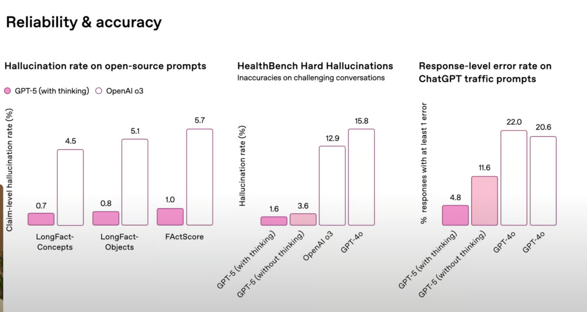 라이브 스트리밍에서 OpenAI는 "겉보기에 간단한 벤치마크 차트"를 사용했지만, 근본적인 오류가 있었습니다. "레이블과 막대 높이가 전혀 일치하지 않습니다.