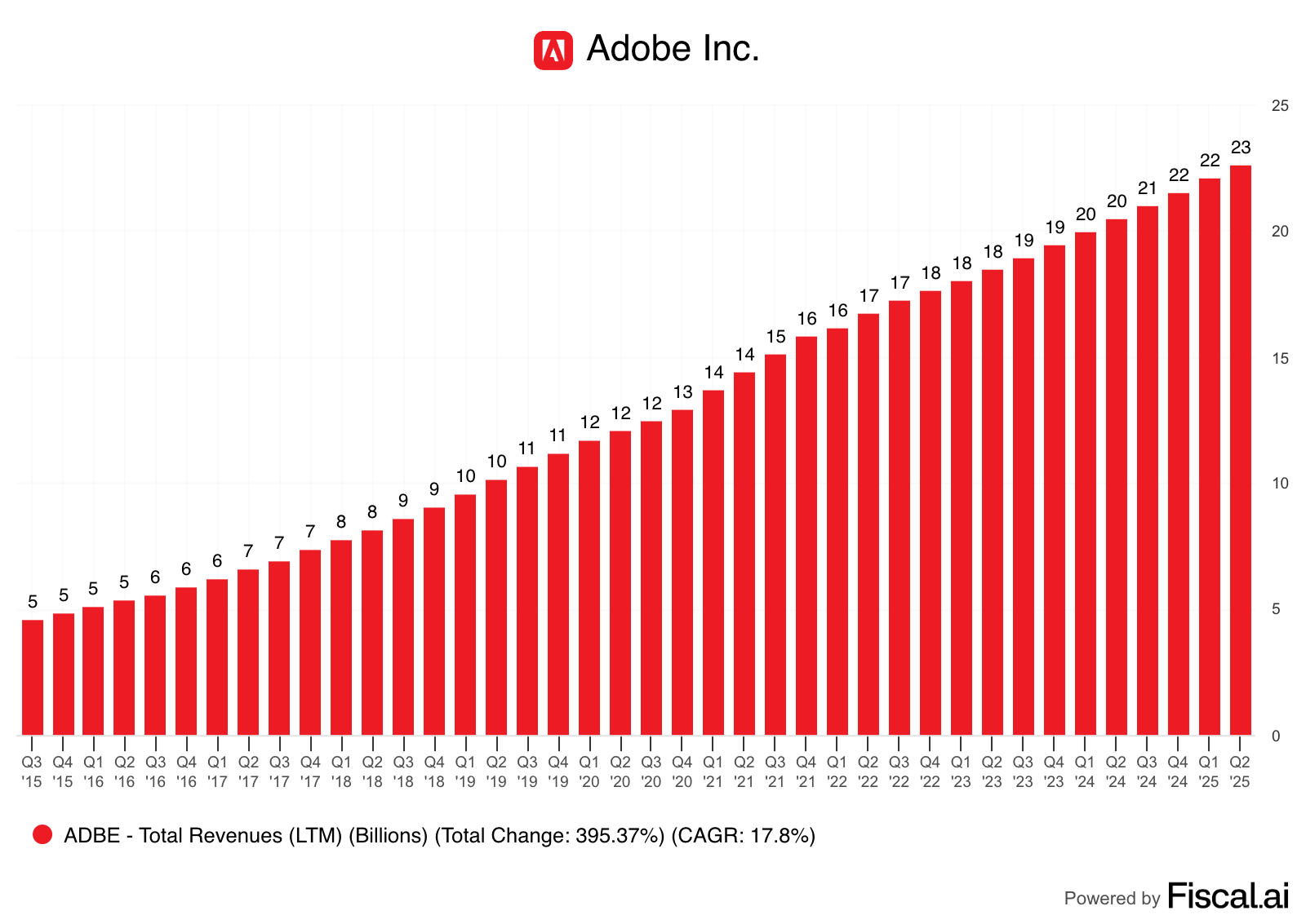 $ADBE: 2025 회계연도 2분기 매출 $58억 7천만(+11%), 디지털 미디어 연간 수익률 $180억 9천만; 2025 회계연도 매출 가이던스 $235억~236억, AI 첫 해 연간 수익률 $2억 5천만 이상 목표.